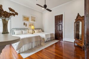 The Antebellum Guesthouse on Esplanade Avenue offers a compelling example of plaster restoration in a 19th-century New Orleans home. Keith Teachout and his partner rehabilitated their Italianate house, built by Anatole J. Forstall in the late 1830s, into a bed and breakfast, focusing on preserving its double parlor’s intricate plasterwork.