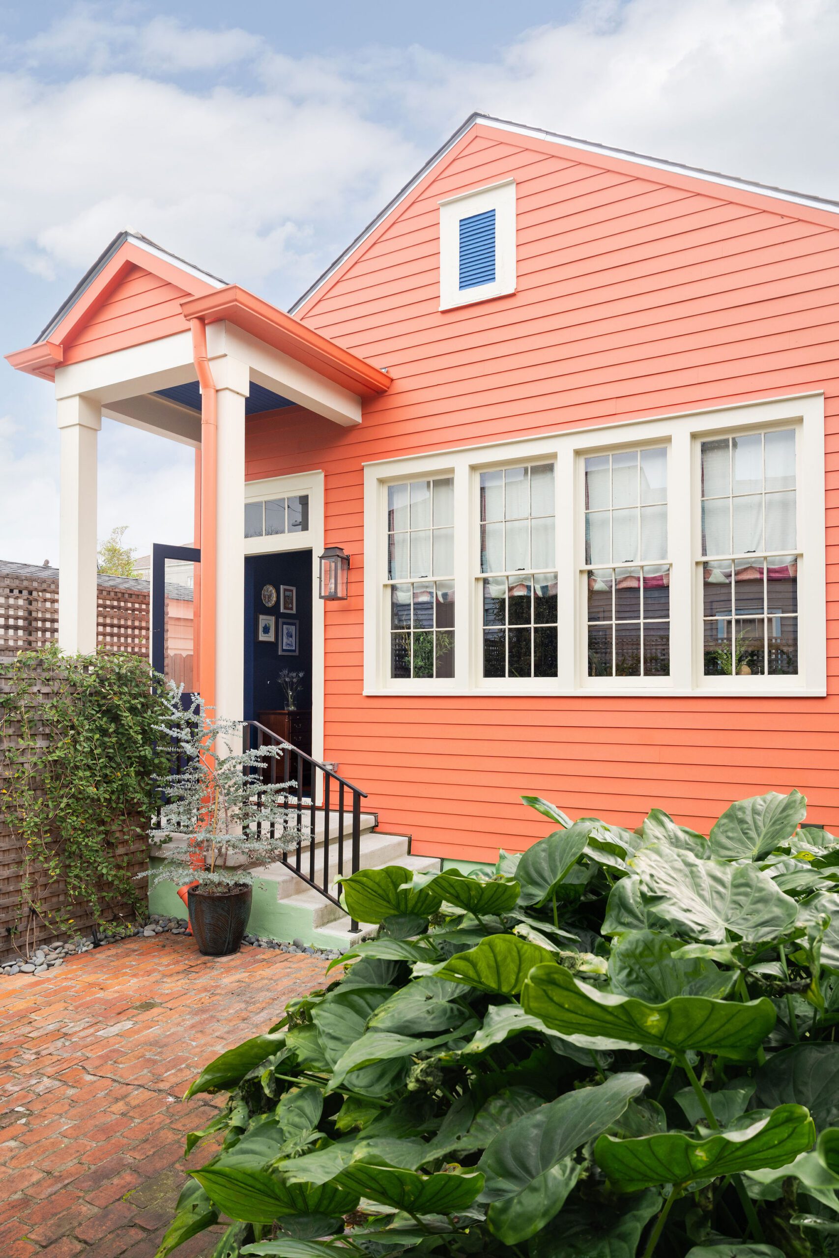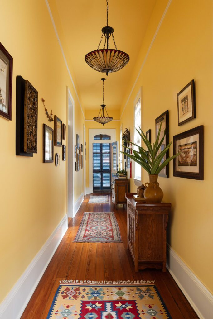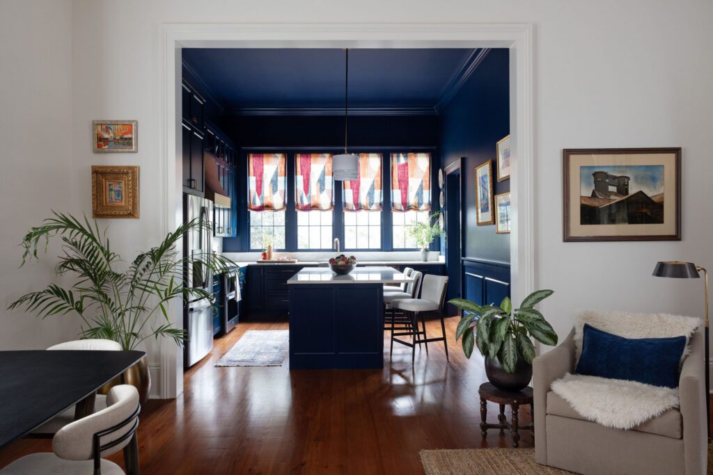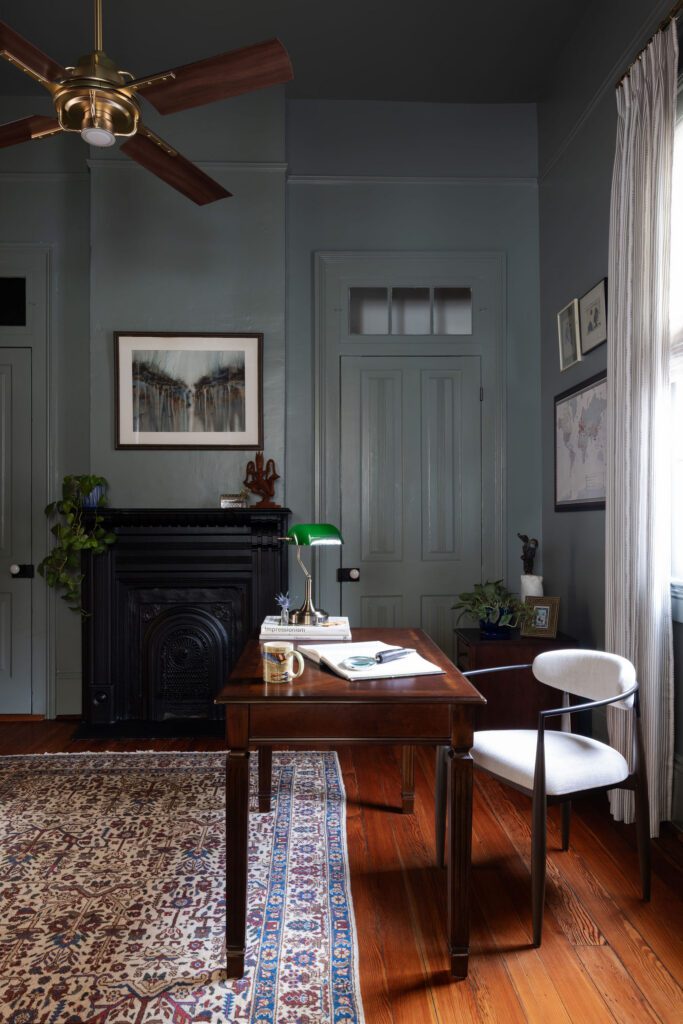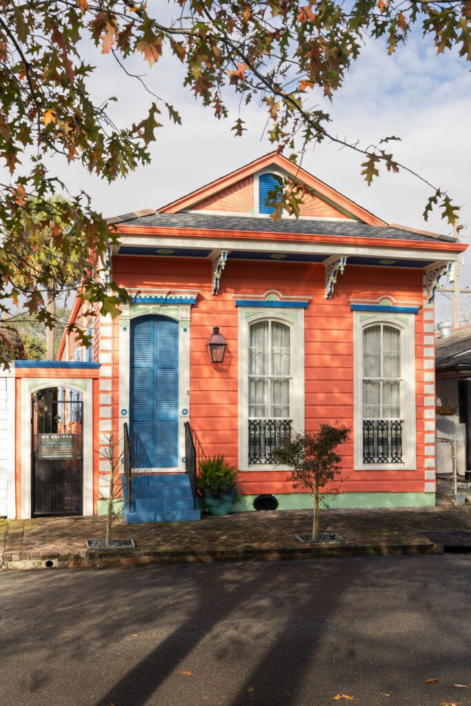 This historic sidehall gallery house in the Bywater neighborhood underwent a full renovation and modest rear addition under full HDLC jurisdiction. We worked to preserve the home’s traditional front-room layout, while completely reworking the rear to improve function, ceiling heights, and flow. A previous shed-roof addition left the kitchen and living areas with dropped ceilings and poor connection to the rest of the home. The old addition was removed and replaced with a new 15-foot rear addition that extended the existing gabled roofline to match the 12-foot ceiling heights of the main house. The kitchen and living spaces are now bright and open, with a full bank of rear windows connecting the kitchen to the courtyard beyond.
