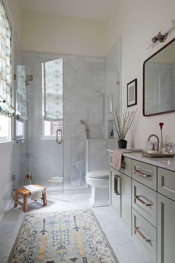 Within the existing footprint, the private spaces were fully reconfigured to create a true primary suite, complete with a walk-in shower, double vanity, and dedicated walk-in closet, alongside a redesigned secondary bath. Adamick Architecture developed the interior elevations and layouts, and Martha Pearson Designs guided material and finish selections to bring the full vision to life. The project is a clear example of how a small addition, paired with careful interior reconfiguration can transform the way a home feels without overwhelming its original character.