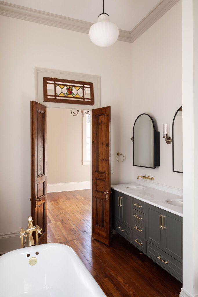 Nestled in the heart of the Milan Uptown neighborhood, this stunning 4-bay shotgun home stood as a testament to New Orleans’ architectural history, and featured many beloved elements of classic New Orleans design: original hardwood floors throughout, pocket doors and transoms, soaring 12-foot ceilings, original wood windows, and many exposed brick fireplaces. Its dated interior and awkward layout presented an opportunity to modernize the space while preserving its original charm. Our team took on the challenge of reimagining this historic interior renovation to create a more functional and comfortable living environment that honors the character of New Orleans architecture by reconfiguring the existing layout, moving the kitchen, and adding a private primary suite. The newly renovated 4-bay shotgun home is a beautiful example of how thoughtful design can honor the past while embracing the present. By preserving the home’s historic features and addressing functional shortcomings, we’ve created a space that embodies the spirit of New Orleans architecture.