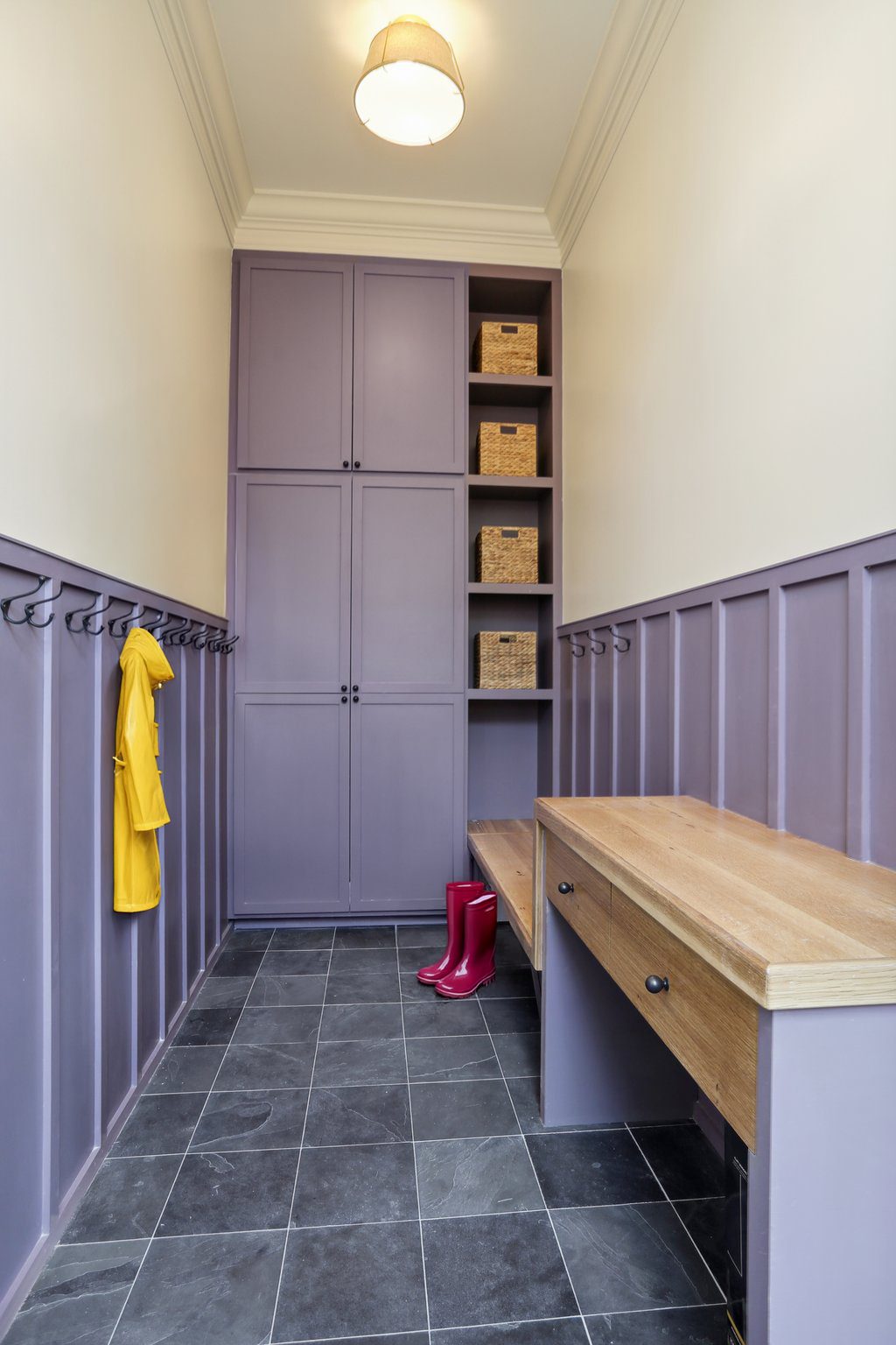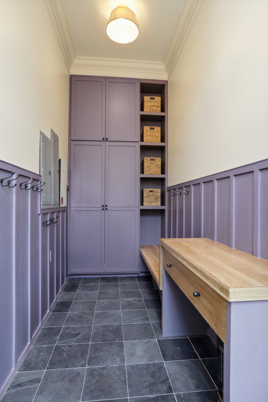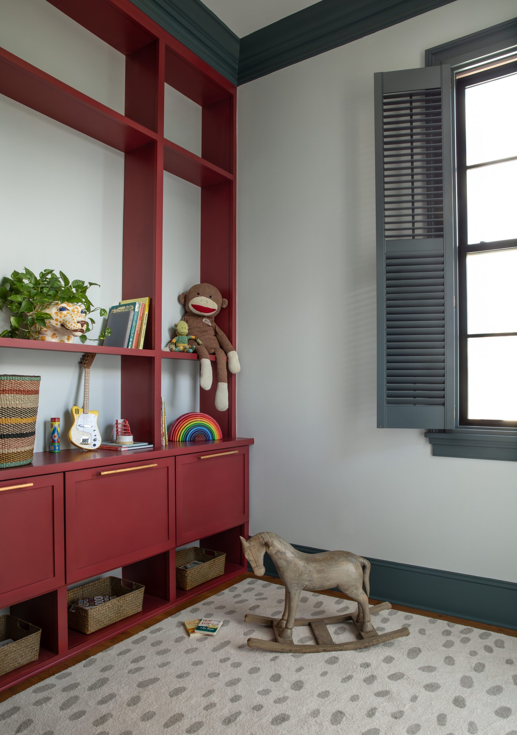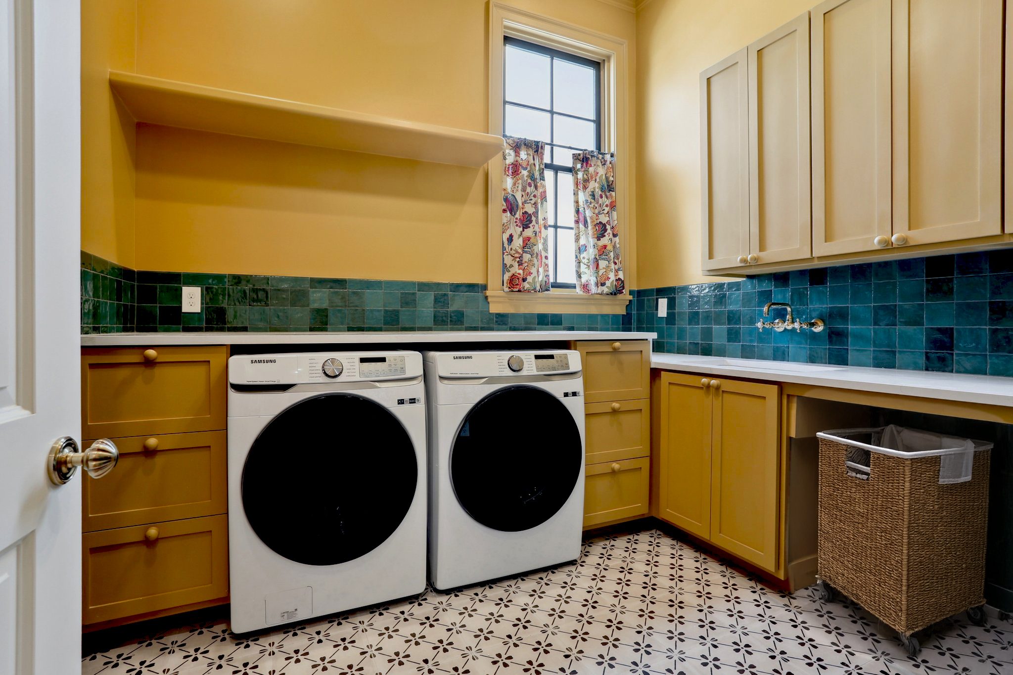 Inside, the layout blends traditional formality with family-friendly functionality. The first floor includes a double parlor off the entry hall, complete with oversized pocket doors, and a generous kitchen connected to the family room and new fireplace. A mudroom at the carport entry keeps the flow practical for daily life, while a private guest suite is tucked into the recessed front portion of the home. Upstairs, the design continues to balance comfort and function. Equal-sized bedrooms with ensuite baths line the rear for the children, along with a dedicated playroom and laundry room. At the front, the primary suite includes an adjacent office, both opening onto the front porch to take in views of the neighborhood.