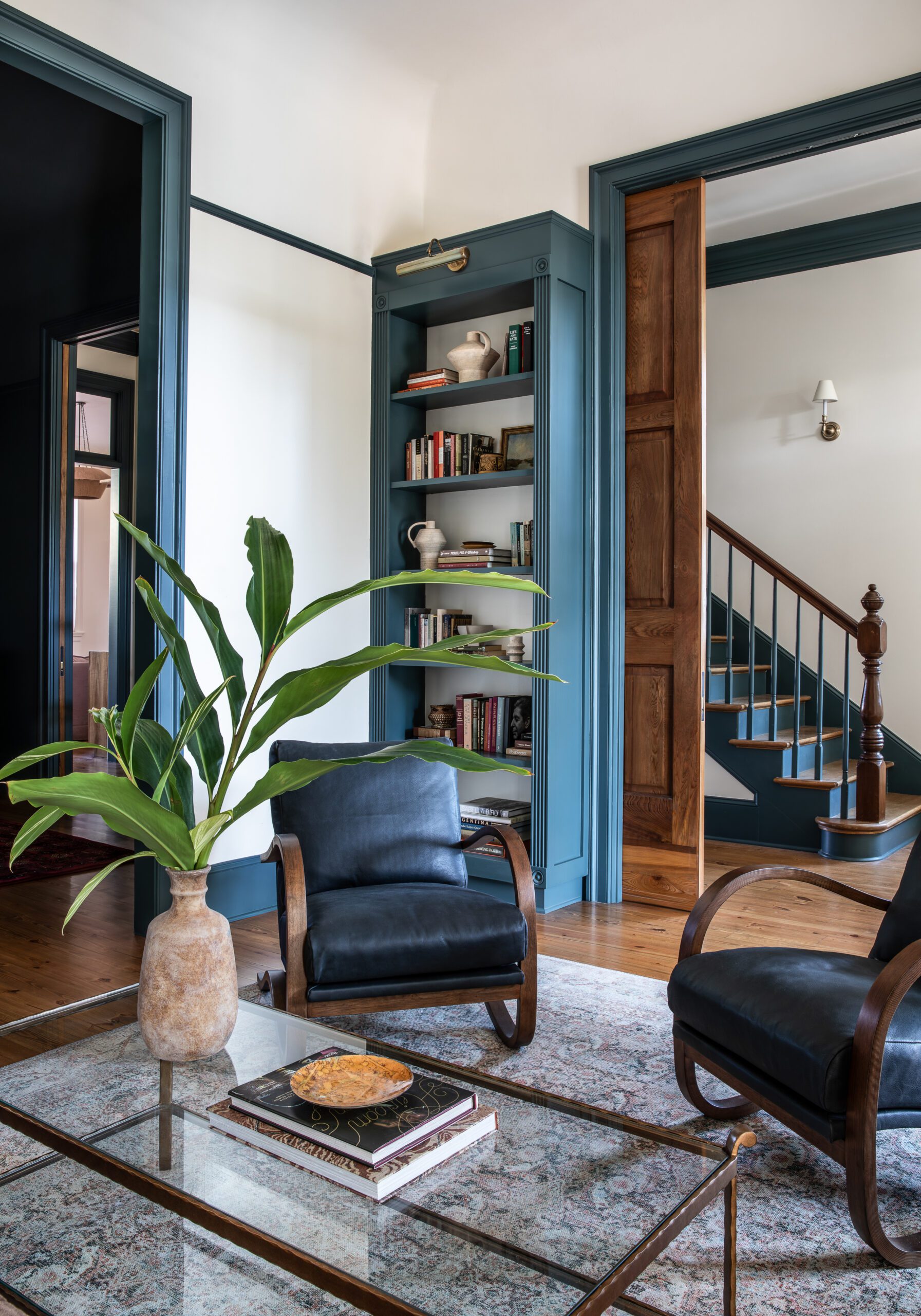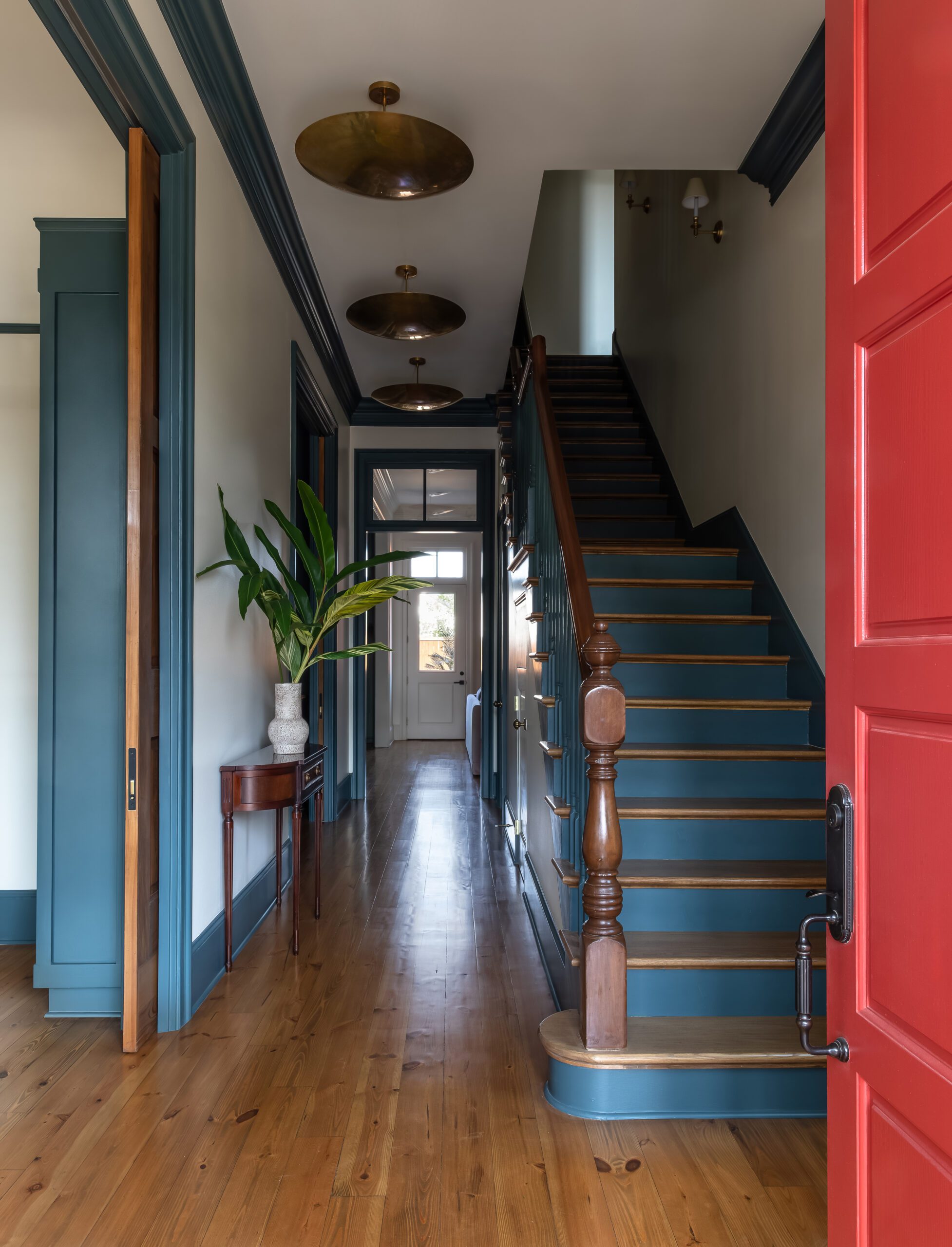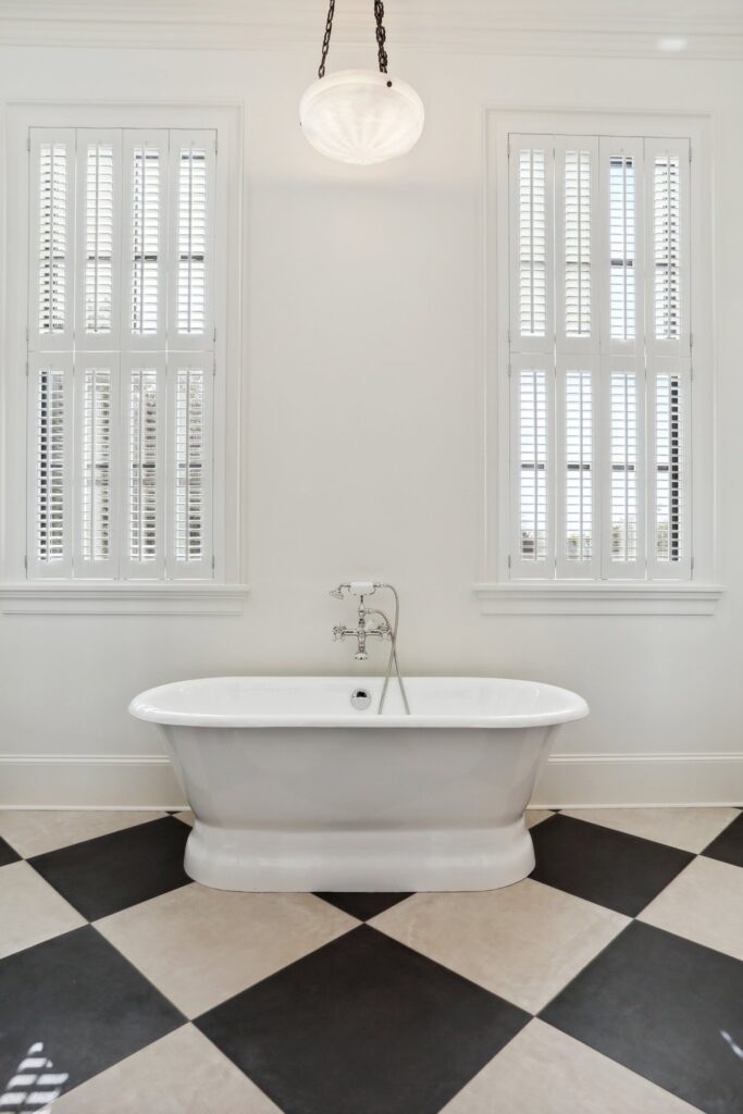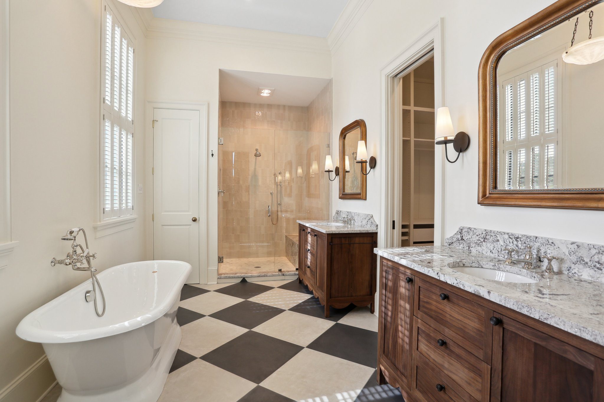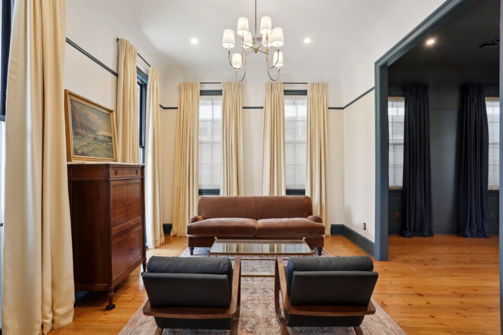 Adamick Architecture designed this new construction home for a growing family on a vacant lot in the Irish Channel. While it’s a ground-up build, the design draws heavily from traditional New Orleans vernacular so it feels right at home in the historic neighborhood. The house features a split three-bay/two-bay massing with a double gallery at the front — a detail common to the area — paired with large floor-to-ceiling windows that bring in natural light. The site plan accommodates modern needs with a carport, swimming pool, and pool house at the rear.
